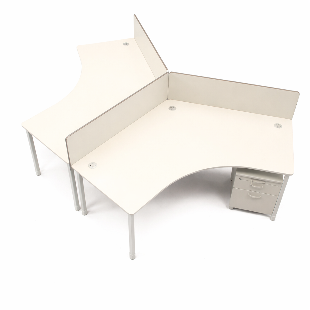 L형책상 2개 (좌1/우1) + 이동서랍(내부목재) 2개 + 사이드올문장 2개 + U형자립형 1개